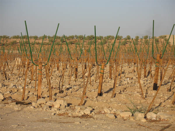 He’s planted 18 varieties from France, Spain, and Italy. With the abundance of sun I was able to witness in December 2009 a cluster of fruit on a Chenin Blanc vine which was planted only that March! The most fascinating viticultural development I discovered is of Hwaidak’s experimenting with a few acres dedicated to reorienting the growing season to run October through June with dormancy taking place in the hottest period of July-September, in part by applying a chemical called ‘Dormix’ to delay budbreak.