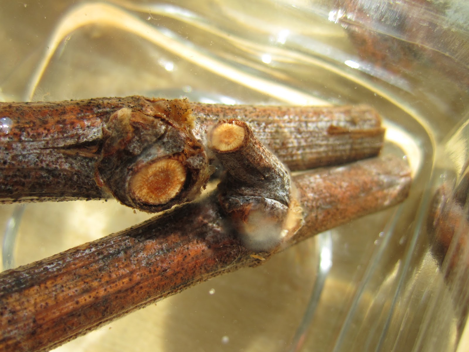 In contrast, here’s how a cutting looks that I took from one of the old vines we have on the balcony, admittedly a little longer ago, when we were doing winter pruning: