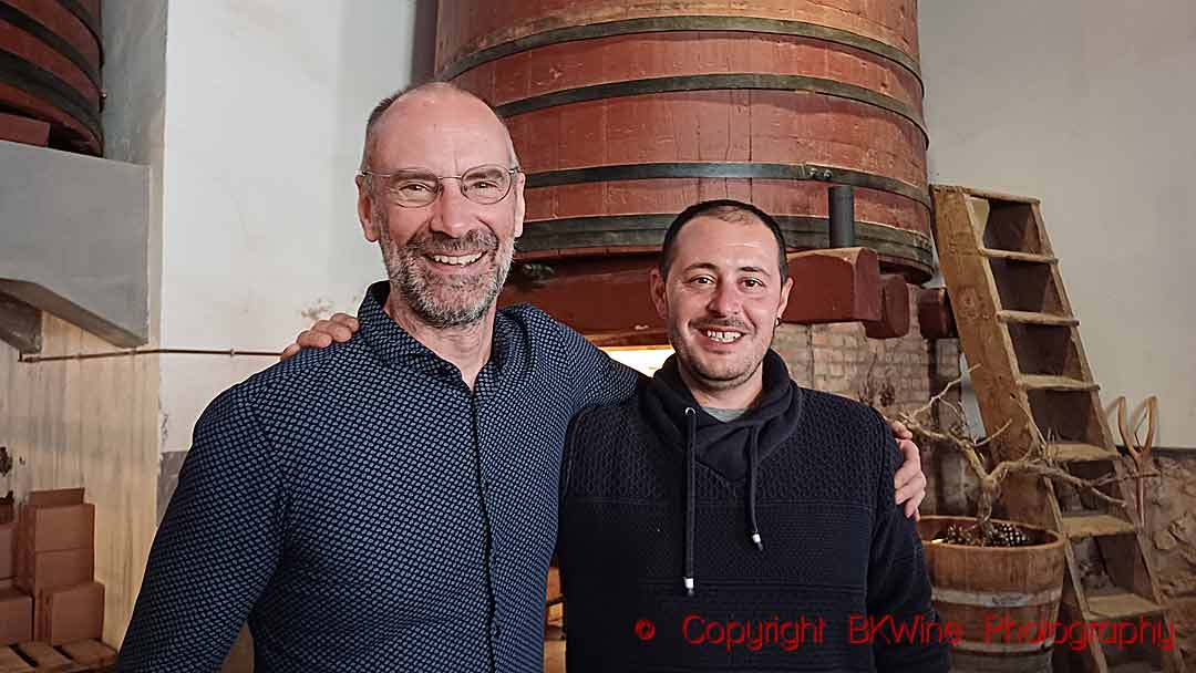 Vingården närmst källaren ligger på 400 meter över havet. ”Här är berget mycket nära, och det är en jordmån med mycket småsten. Vanligtvis är trepat mer produktiv i lerjordar, och här ger den mindre druvor, mer koncentrerade.”