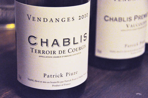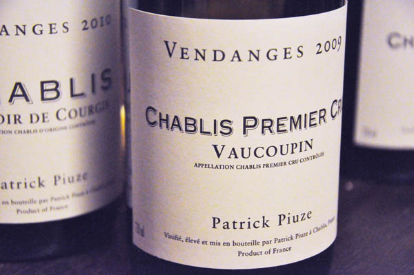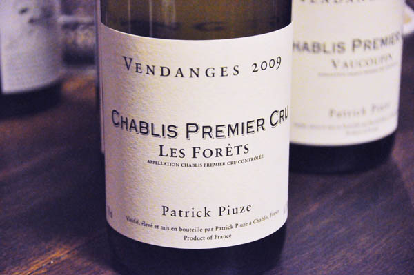 Det sista Chablis vinet är 2009 Patrick Piuze Chablis Premier Cru Les Forêts gjort på druvor från 70-åriga stockar i vingården Les Forêts ligger sydväst om byn Chablis. Det är jäst och lagrat på gamla ekfat under 10 månader.