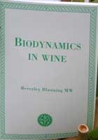 Denna lilla bok (snarare ett häfte) på 60 sidor tar sig an den inte helt lätta uppgiften att beskriva biodynamisk vinodling. Beverley Blanning lyckas göra det på ett bra sätt. Hon är relativt objektiv och förklarar på ett klart och nyktert sätt även mer svårförståliga moment, som hur olika biodynamiska preparat grävs ner i jorden i till exempel kohorn och hjortblåsor (fast här borde hon kanske ha påpekat att många köper en del preparat färdiga att användas, speciellt hjortblåsor är inte lätta att få tag på).