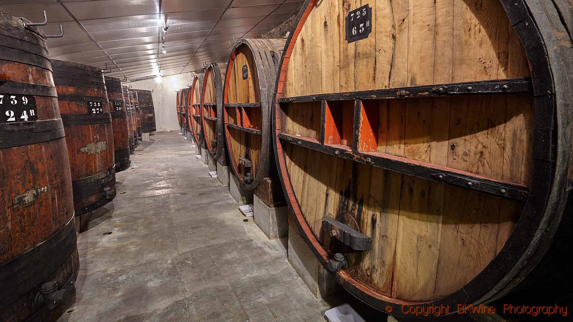 Old oak vats in a wine cellar in Maury, Roussillon, copyright BKWine Photography